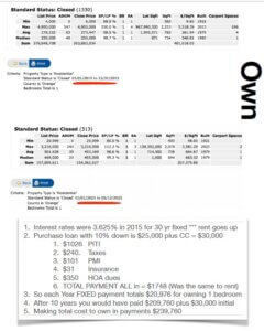 These are real MLS data points, albeit a 1 bedroom scenario, but just goes to show that a young person just starting out has a shot to start small and build up to a larger place in the future. The mistake so many make is: